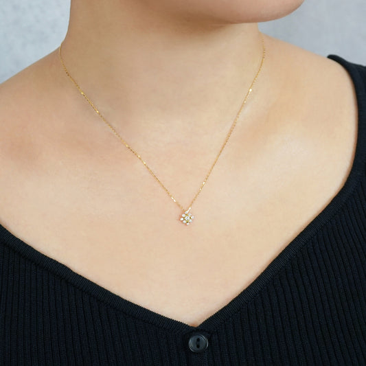 10K Ice Blue Diamond Milgrain Flower Necklace (White Gold)