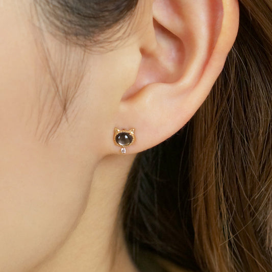 18K/10K Yellow Gold Black Shell Cat Stud Earrings