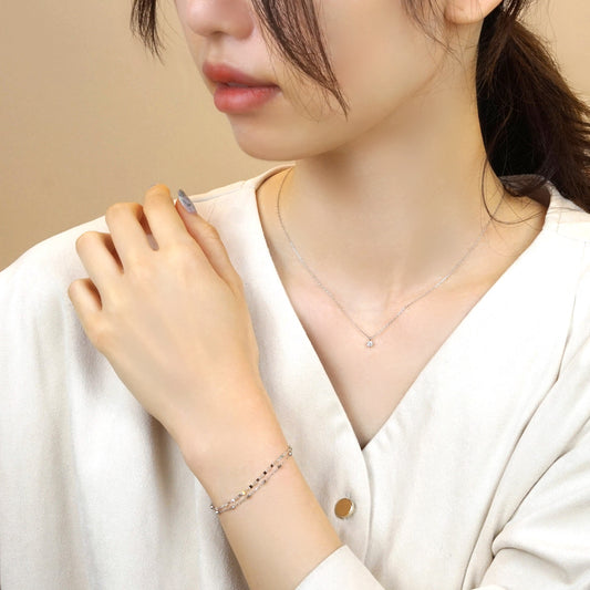 10K Glittering Petal Chain Bracelet (White Gold)