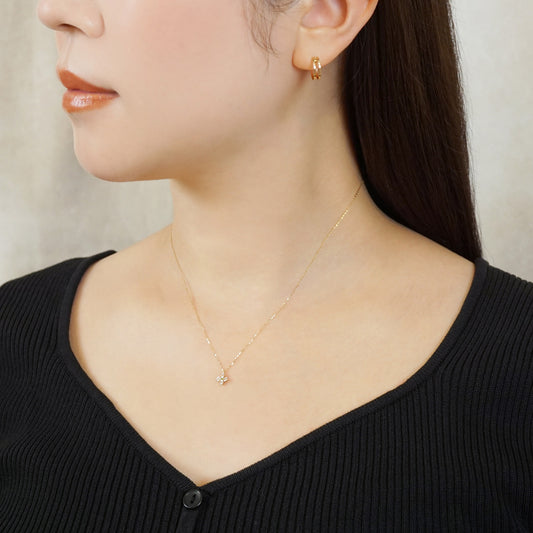 10K Diamond Mini Flower Necklace (Yellow Gold)