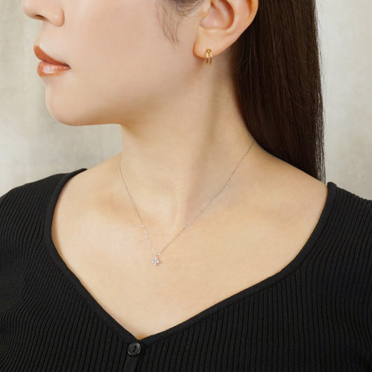 10K Diamond Mini Flower Necklace (White Gold)