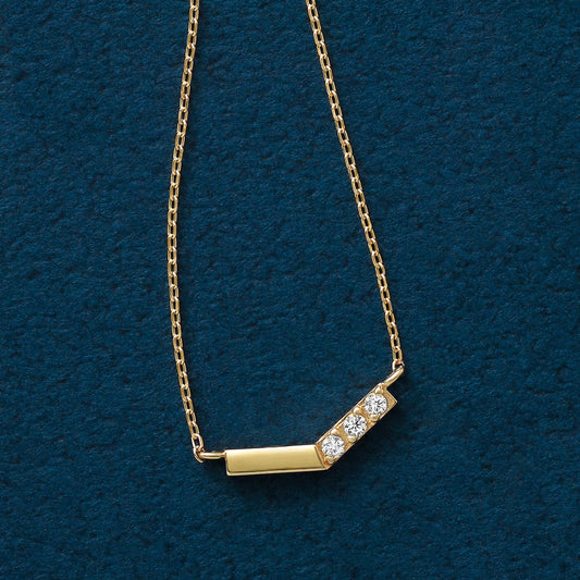 10K Yellow Gold Diamond V-Shaped 3-Stone Necklace