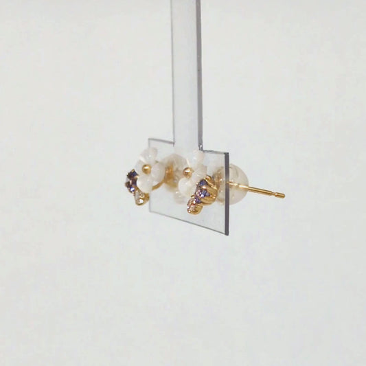 18K/10K White Shell Flower Tanzanite Stud Earrings (Yellow Gold)