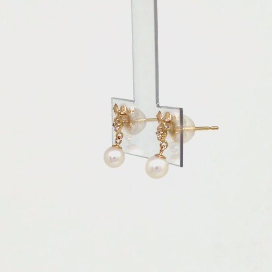 18K/10K Freshwater Pearl Ribbon Swinging Earrings (Yellow Gold)