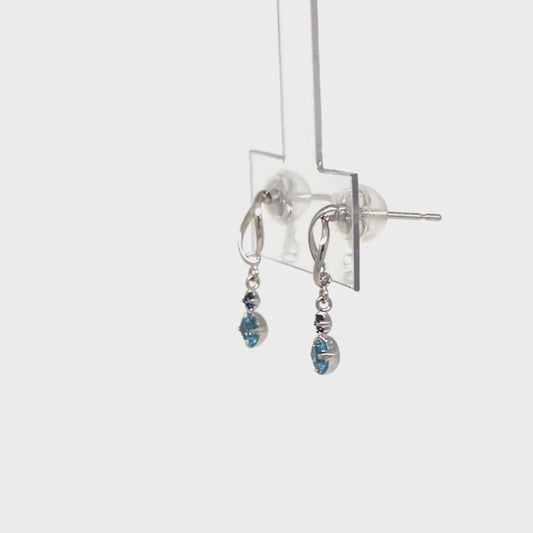 14K/10K Blue Topaz Double Line Swinging Earrings (White Gold)