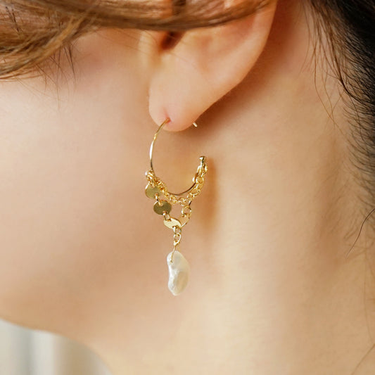 Gold Filled Freshwater Pearl Earrings [Nature Coin]