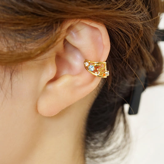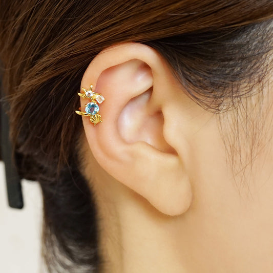 925 Sterling Silver Blue Topaz Coral Fish Ear Cuff