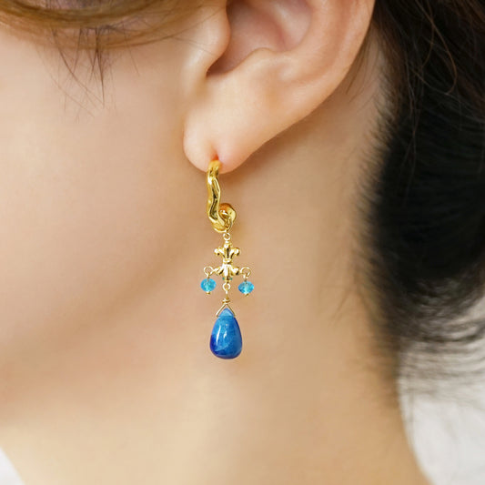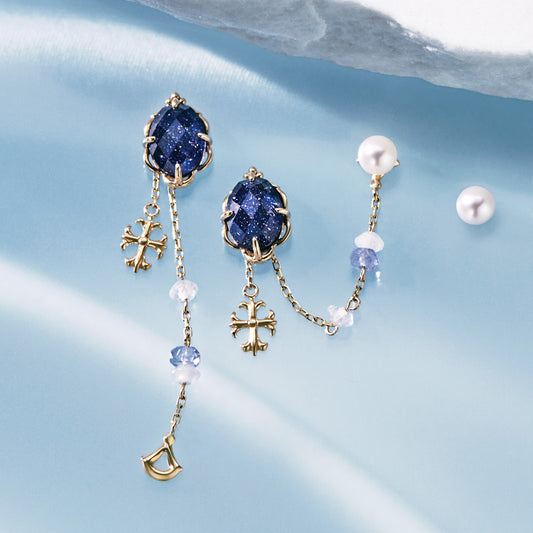 18K/10K 3Way Blue Goldstone Earrings [Mirror in the Sea] (Yellow Gold)