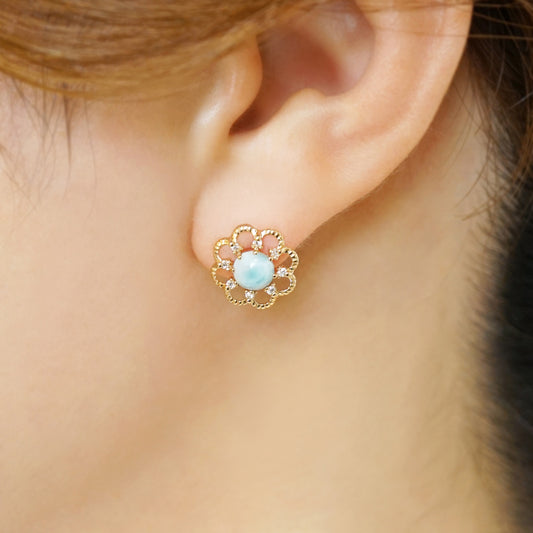 18K/10K Larimar x Moissanite Earrings [Wave Circle] (Yellow Gold)