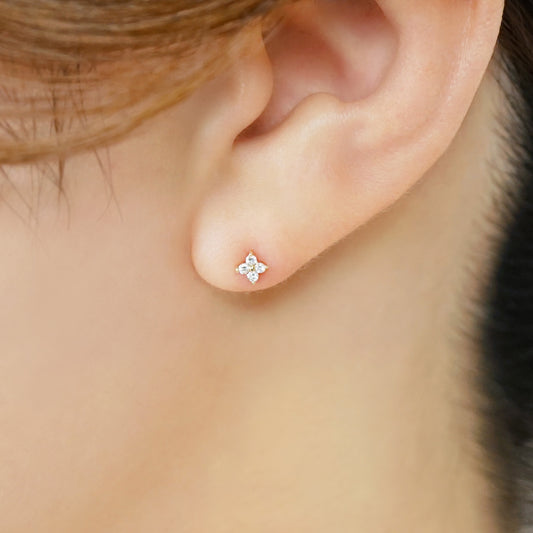 18K/10K Diamond Mini Flower Earrings (Yellow Gold)