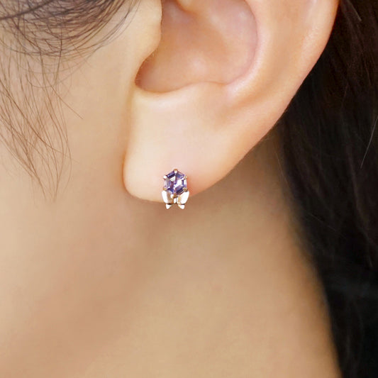 18K/10K Amethyst Butterfly Stud Earrings (Rose Gold)