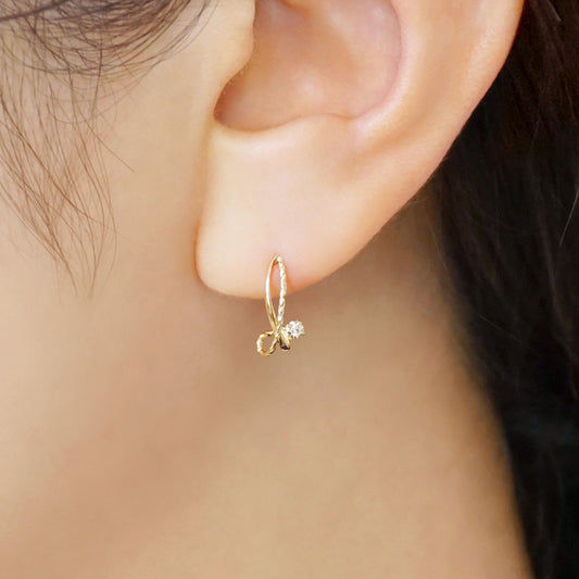 [Solo Earring] 18K/10K Moissanite Ribbon Single Earring (Yellow Gold)