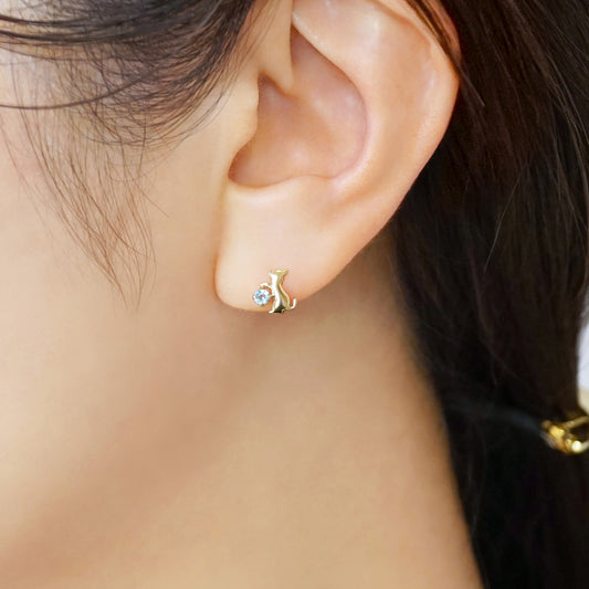 18K/10K Blue Topaz Playful Cat Stud Earrings (Yellow Gold)