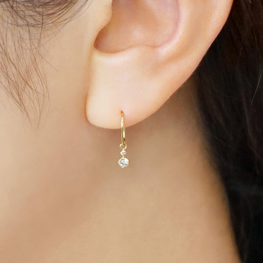 18K/10K 2-Stone Diamond Short Earrings (Yellow Gold)