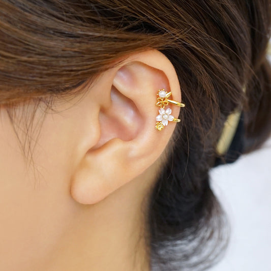 925 Sterling Silver White Shell Cherry Blossoms Ear Cuff