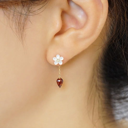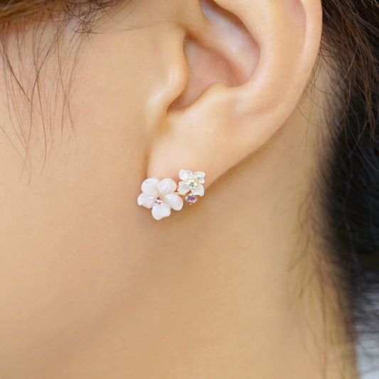 [Solo Earring] 10K / 925 Sterling Silver White Shell Cherry Blossoms Single Earring