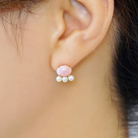 18K/10K Pink Shell Flower Tea Earrings (Yellow Gold)