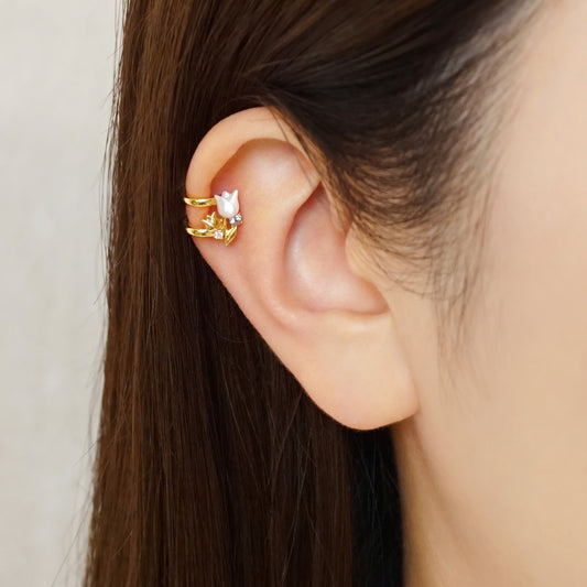 [Birth Flower Jewelry] March - Tulip Ear Cuff (925 Sterling Silver)