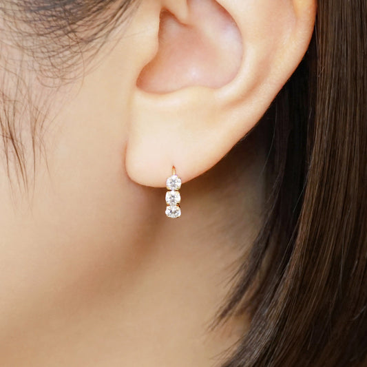 10K 3-Stone Wire Earrings (Yellow Gold)