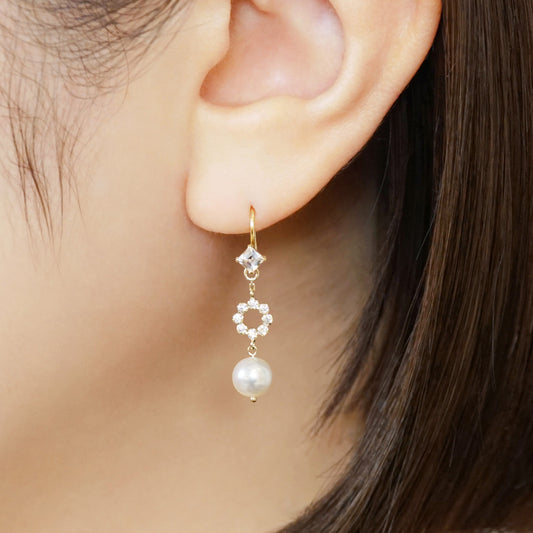 [Palette] 10K Freshwater Pearl x Cubic Zirconia Charms (Yellow Gold)