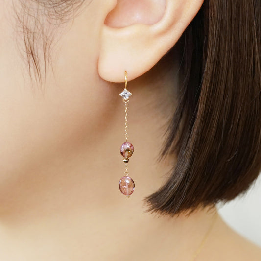 [Palette] 10K Bicolor Tourmaline Asymmetrical Charms (Yellow Gold)