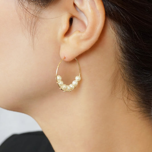 10K Ribbon Shell Pearl Wire Earrings (Rose Gold)