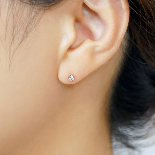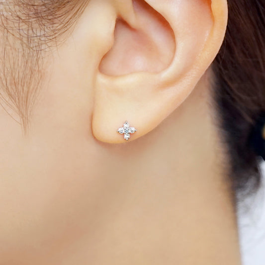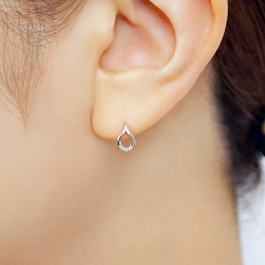 14K/10K Diamond Earrings [Tiny Bow] (White Gold)