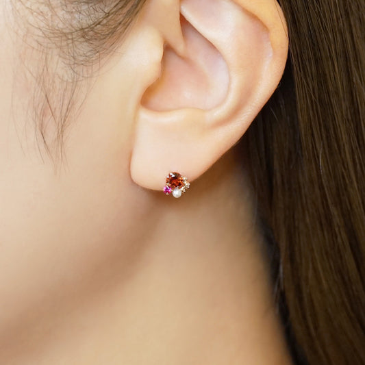 18K/10K Garnet Earrings [Rose Bouquet] (Rose Gold)