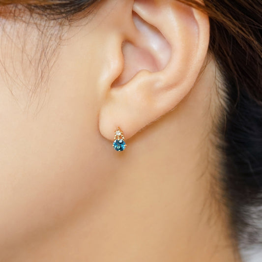 18K/10K Blue Topaz Earrings [Merry] (Yellow Gold)