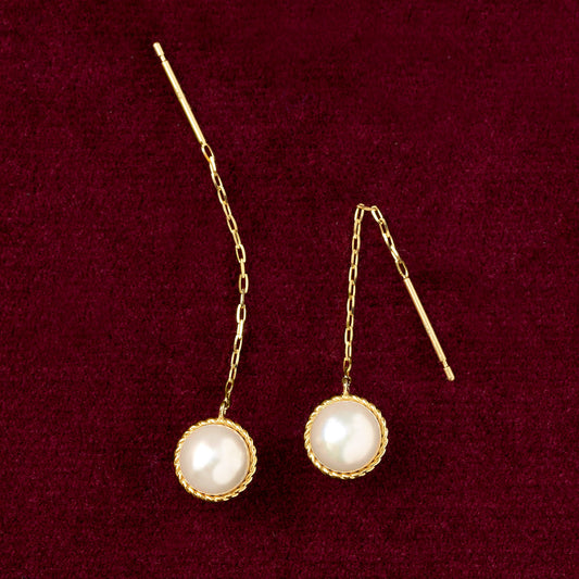 18K/10K Freshwater Pearl 2Way Earrings [Ribbon] (Yellow Gold)