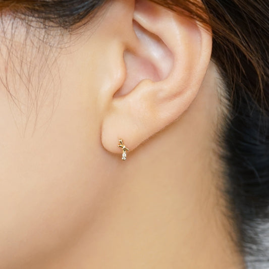 18K/10K Diamond Earrings [Tiny Bow] (Yellow Gold)