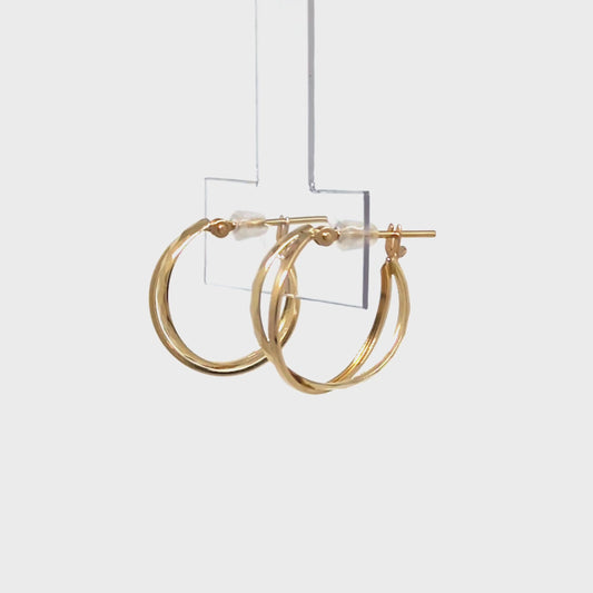 18K/10K Thin Line Double Hoop Earrings (Yellow Gold)