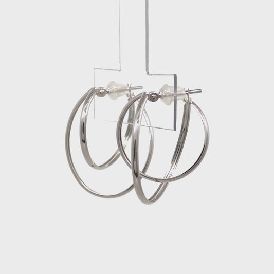 14K/10K Thin Line Double Hoop Earrings (White Gold)