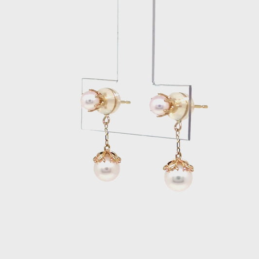 18K/10K Akoya Pearl 2Way Swinging Earrings [Mistletoe] (Yellow Gold)
