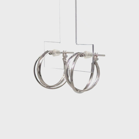 14K/10K Mixed Cut Double Hoop Earrings (White Gold)