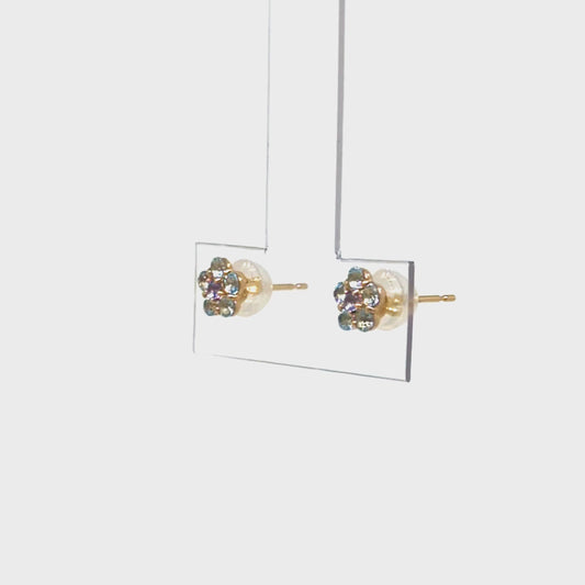 18K/10K Blue Topaz Earrings [Pansy] (Yellow Gold)
