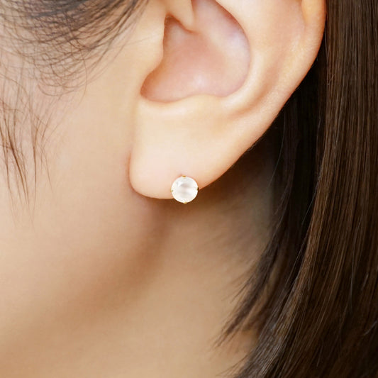 [Solo Earring] 18K/10K Moonstone Circle Single Earring (Yellow Gold)