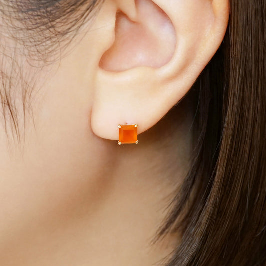 [Solo Earring] 18K/10K Carnelian Square Single Earring (Yellow Gold)