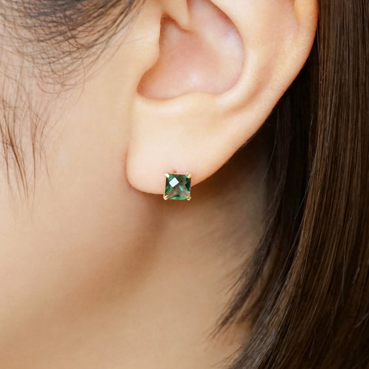 [Solo Earring] 18K/10K Green Quartz Square Single Earring (Yellow Gold)