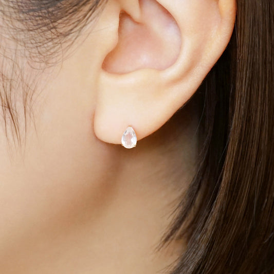[Solo Earring] 18K/10K Rose Quartz Dew Drop Single Earring (Rose Gold)