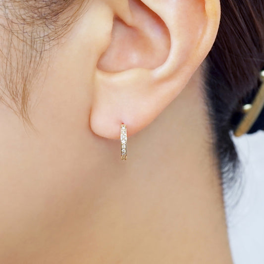 [Solo Earring] 14K/10K Diamond Huggie Hoop Single Earring (Large) (Yellow Gold)