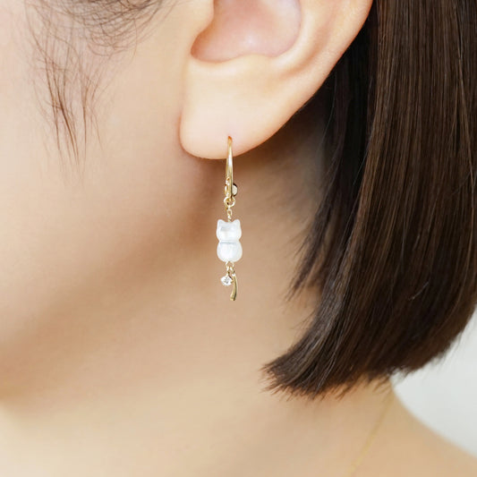 [Palette] 10K White Shell Cubic Zirconia Cat Charms (Yellow Gold)