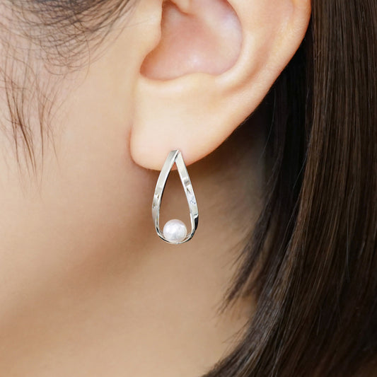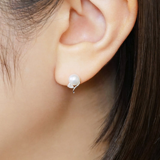 14K/10K Freshwater Pearl Glittering Twist Stud Earrings (White Gold)