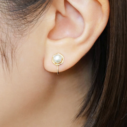 [Airy Clip-On Earrings] 10K Freshwater Pearl Twist Earrings (Yellow Gold)
