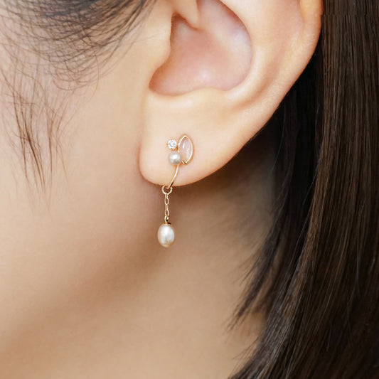 [Airy Clip-On Earrings] 10K Freshwater Pearl Swinging Earrings (Rose Gold)