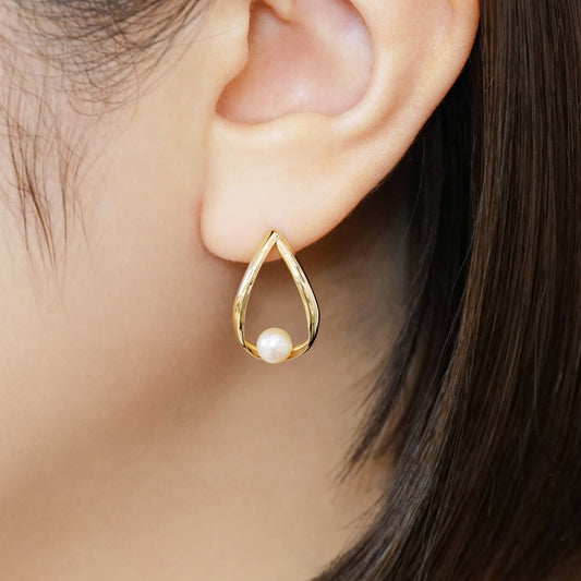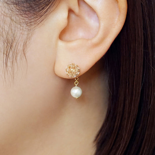 [Pannier] 18K/10K Akoya Pearl Flower Pattern Earrings (Yellow Gold)