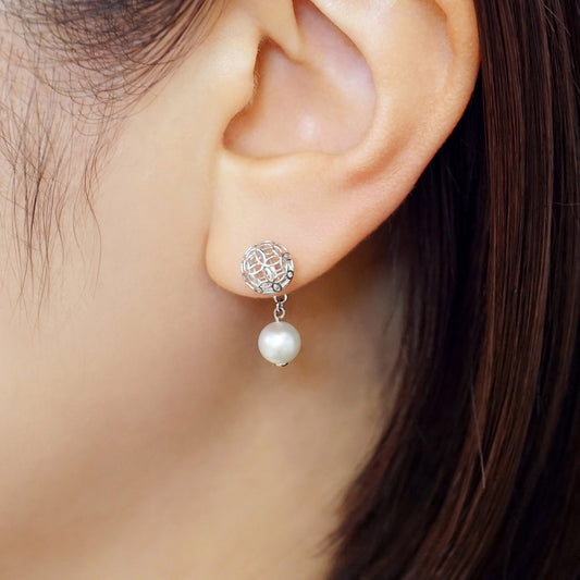 [Pannier] 14K/10K Akoya Pearl Flower Pattern Earrings (White Gold)