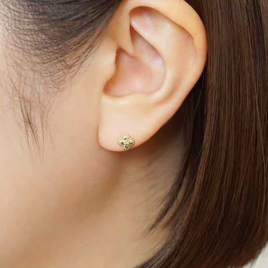 [Airy Clip-On Earrings] 10K Apatite Earrings (Yellow Gold)