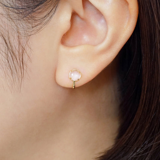 [Airy Clip-On Earrings] 10K Rose Quartz Earrings (Yellow Gold)
