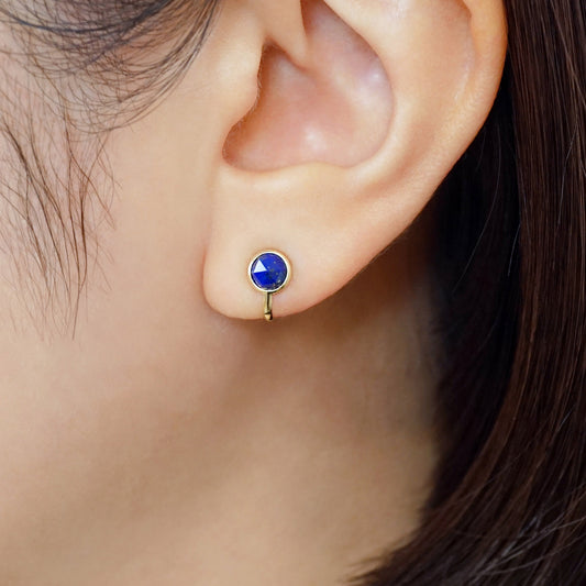 [Airy Clip-On Earrings] 10K Lapis Lazuli Earrings (Yellow Gold)